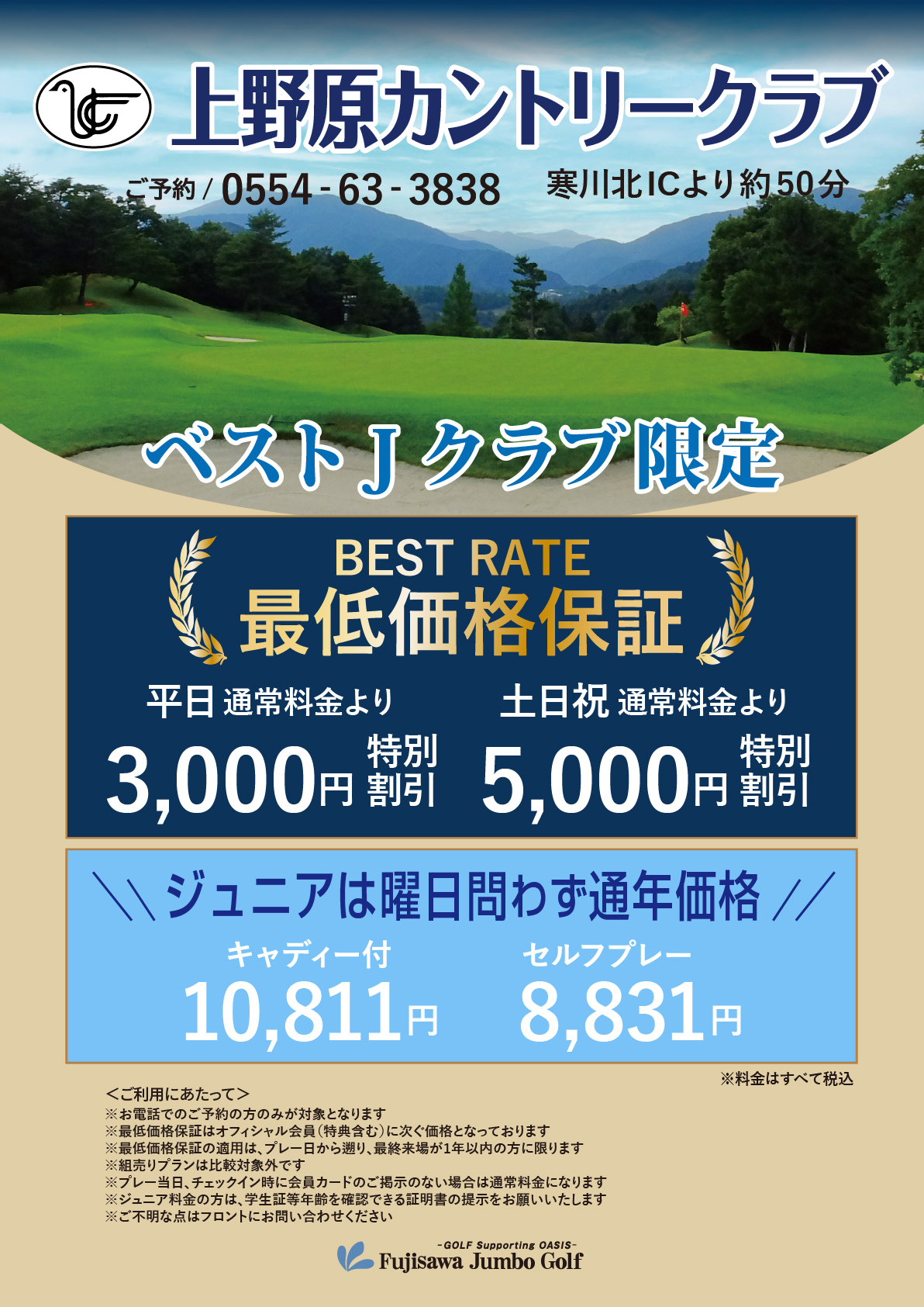 【ベストJクラブ限定 上野原カントリークラブ特別優待】のお知らせ